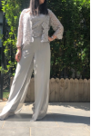 レビュー: 花嫁のマザーガウンバトーネック長袖Aラインレースライトグレーゲストパンツサッシ付き結婚式用スリーピース