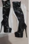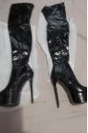 レビュー: オーバーザニーブーツブラックラウンドトゥブライトレザープラットフォームウィンターブーツ女性ハイヒールサイハイブーツ