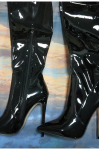 レビュー: オーバーニーブーツ レザー ブラック ポインテッドトゥ スティレットヒール ブライトレザー サイハイブーツ