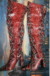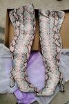 レビュー: ニーハイブーツ レザー ピンク ポインテッドトゥ スネークプリント チャンキーヒール サイハイブーツ