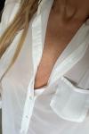レビュー: パジャマ 寝間着 ホワイト ボタン 1枚 ターンダウンカラー 長袖 シフォン ランジェリー
