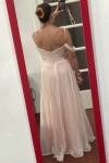 レビュー: ピンクの花嫁介添人ドレスAラインフロアレングスVネックシフォンウエディングドレス