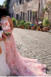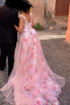 レビュー: パーティードレス ライトピンク Aライン ノースリーブ スクープネック レースアップ トレーン付き