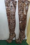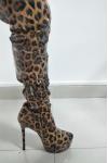 Beautiful leopard print. Fit true to size. Tall. Truly thigh high. Comfortable- could wear all day without discomfort. platform heels have an overall slimming effect. Would definitely recommend it.