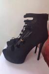 レビュー: プラスサイズ ハイヒール セクシーサンダル ブラック マイクロスエードアッパー スティレットヒールシューズ