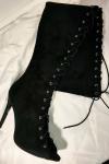 レビュー: レディース レースアップ サイハイヒール ブーツ ブラック スエード