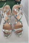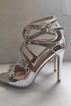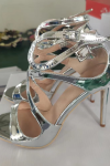 レビュー: ヒールサンダルシルバースチレットヒールオープントゥパテントPUアッパーハイヒール