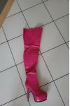 レビュー: 膝上女性プラスサイズスチレットヒールブーツPUレザーローズサイハイブーツ