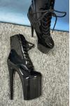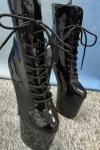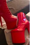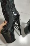 レビュー: セクシーなハイヒールブーツレッドラウンドトゥジッパー幾何学的なスティレットヒールレイブクラブサイハイブーツ ポールダンスシューズ