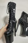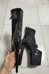 レビュー: 女性のセクシーなブーツのぞき見つま先のスリップオンバックル幾何学的なスティレットヒールレイブクラブ黒サイハイブーツ ポールダンスシューズ
