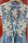 レビュー: ウエディングドレスブルーグレーボールガウンハイカラーチュール半袖ビーズフロアレングスウェディングゲストドレス