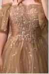 レビュー: プロムドレスブラウン 夜会服 オフショルダー チュール 半袖 ビーズ マキシレングス ページェントドレス ウェディングゲストドレス 自由なカスタマイズ