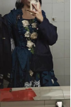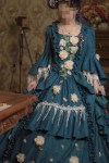 レビュー: ロココビクトリア朝のレトロコスチュームドレスレイヤードフローラルプリントネイビーブルーコスプレコスチュームカーニバル