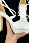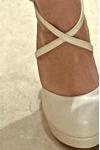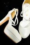 レビュー: ホワイトウェディングシューズ サテンプラットフォーム ラウンドトゥ クリスクロス ブライダルパンプス