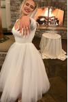 レビュー: ショート ウェディングドレス 2025年 Vネック 長袖 Aライン マキシレングス ブライダルドレス 自由なカスタマイズ