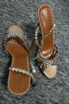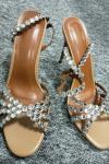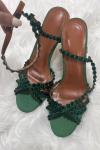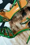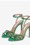 レビュー: ハイヒールサンダル グリーン オープントゥ ラインストーン アンクルストラップ スティレットヒール プロム パーティーシューズ
