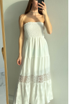 レビュー: サマードレス バトーネック レース ホワイト ロング ビーチドレス