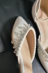 レビュー: ホワイト フラット ブライダル シューズ ポインテッドトゥ ラインストーン アンクル ストラップ ウェディング シューズ