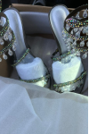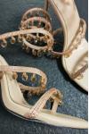 レビュー: ハイヒールサンダル レディース オープントゥ ラインストーン レースアップ プロムシューズ