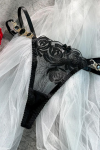 レビュー: ブラジャー パンティ セット 刺繍入りメタルディテール 3ピース セクシーランジェリー ガーターベルト付き