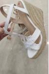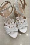 レビュー: ウェディングシューズ PUレザー ホワイト 刺繍入り オープントゥ ウェディングサンダル