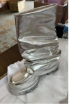 レビュー: シルバー スラウチ ブーツ レディース ラウンドトゥ フラット ブーティ
