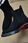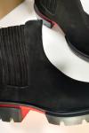 レビュー: メンズ チェルシーブーツ ブラック スエード 中央ステッチ レザー ラグソール スクエアトゥ アンクルブーツ