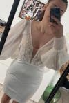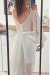 レビュー: ショートウェディングドレス ショート Vネック 長袖 シース ナチュラルウエスト ストレッチ クレープ ショートブライダルドレス