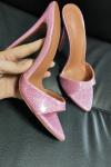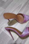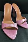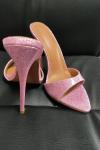 レビュー: グリッターハイヒールミュールオープントゥスティレットヒールセクシーサンダルスライド