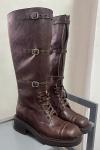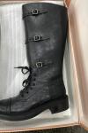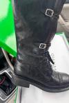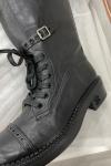 レビュー: ブラック コンバット ニーハイブーツ レディース ラウンドトゥ バックルディテール レースアップブーツ