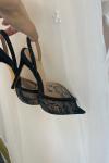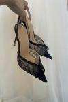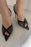 レビュー: レース パーティーシューズ ピープトゥ ブラック ラインストーン スリングバック ハイヒール パーティーシューズ