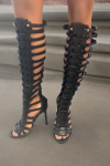 レビュー: ブラックグラディエーターサンダル ハイヒール オープントゥ バックルディテール サンダルシューズ