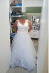 レビュー: トレーン付きウェディングドレス プリンセスシルエット ノースリーブ レース Vネック ブライダルガウン