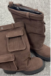 レビュー: スエードミッドクラフブーツ レディース プラットフォーム ラウンドトゥ バックルディテール 乗馬ブーツ ポケット付き