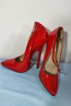 レビュー: パンプス 6.3 インチ ハイヒール パテント アンクル ストラップ パンプス レッド セクシー