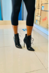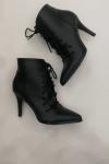 レビュー: ブラックアンクルブーツ女性ポインテッドトゥレースアップハイヒールブーティー