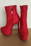 レビュー: ハイヒール ブーティー レッド プラットフォーム ジップアップ アンクルブーツ 女性用
