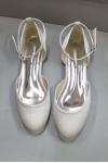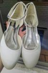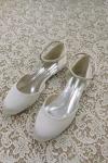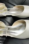 レビュー: アイボリーウェディングシューズサテンラウンドトゥアンクルストラップフラットブライダルシューズブライドメイドシューズ