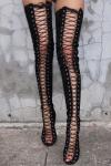 レビュー: サイハイブーツ ヌバック レースアップ ピープトウ スティレットヒール オーバーザニーブーツ レディース