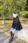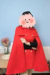 レビュー: ポンチョ コート 折り襟 マントコート レッド レディースアウター ウール レディースファッション 普通 無地 ボタン アカデミック プラスサイズ