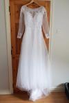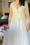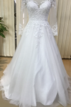 レビュー: ウェディングドレス 2025 vネック Aライン 長袖 マキシ丈 レースアップリケ チュールブライダルドレストレーン付き
