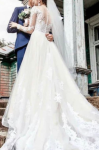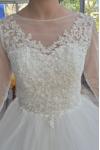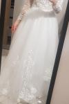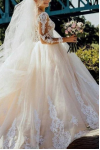 レビュー: ウェディングドレス 2026 Aライン vネック 長袖 レースアップリケ チュール ブライダルガウンチャペルトレーン付き
