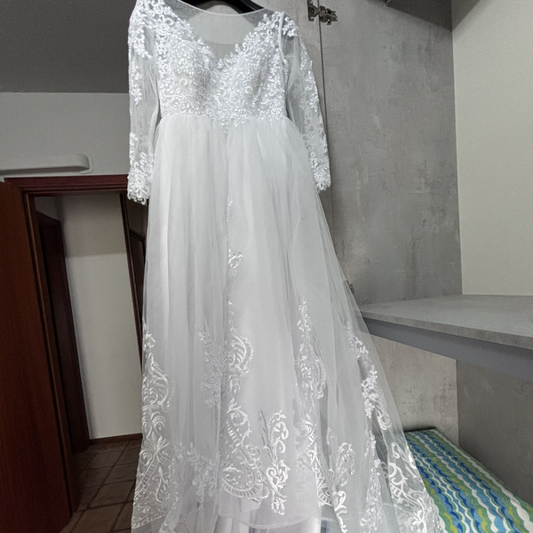 D****sCouleur:IvoireTaille:EU 50フィット感:ちょうどいいサイズen tout point fidèle à la deion, elle est magnifique portée. sans jupon ça donne un style un peu bohème ,avec un jupon ça devrait faire plus classique .j'avais bien pris les mensurations de ma fille et elle est vraiment topissime. elle tombe très bien de très bonne qualité. je suis ravie .je mettrai une photo plus tard lorsqu'elle sera coiffée et maquillée. je l'ai prise en couleur écrue ,elle est ravissante . ma fille est conquise de son choix .rapport qualité prix au top même avec les frais de transport de douanes etc environ 70€ c'est une robe de mariée de qualité