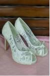 レビュー: 白い結婚式のレースの弓のぞき見つま先のスティレットヒールのブライダルシューズ