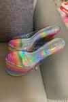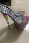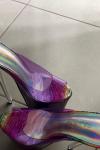 レビュー: ハイヒールのセクシーなサンダル赤PUレザーのぞき見つま先レーザーセクシーな靴 ポールダンスシューズ
