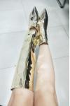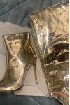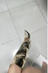 レビュー: ゴールドコンバーチブルニーハイブーツ メタリックミラー ブライトレザー 膝丈 プロムパーティーブーツ