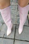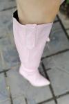 レビュー: レディース ウエスタンブーツ スネークスキン ニーハイブーツ ブロックヒール ピンク カウガールブーツ