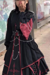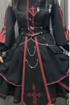 レビュー: ゴシックロリータOPドレス ミリタリースタイル 3点セット 長袖 ポリエステル ロリータセット ブラック