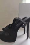 レビュー: ハイヒール セクシー サンダル ブラック スエード アンクル ストラップ プラス サイズ スティレット ヒール