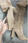 レビュー: オーバーニーブーツ ワイドカーフサイハイブーツ レディース スエード チャンキーヒール